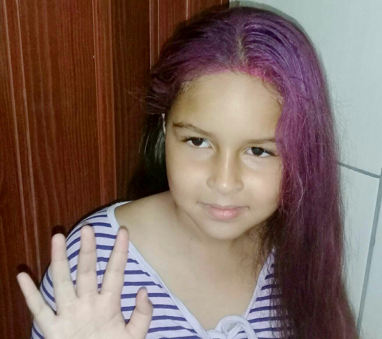 With that said and done. Here is a pic of my kid and her new pink hair lol 😁😅